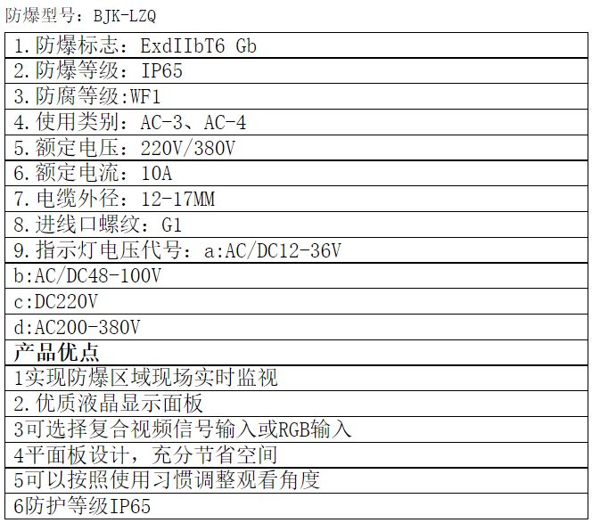 主要用于石油開采、煉油、化工、醫(yī)藥、海洋石油平臺(tái)、油輪、油庫(kù)、軍工、金屬打磨拋光、糧食生產(chǎn)儲(chǔ)存等爆炸性氣體環(huán)境和爆炸性粉塵環(huán)境,作為自動(dòng)化、信息化系統(tǒng)的顯示、監(jiān)視之用;