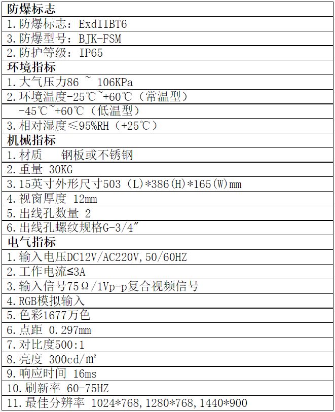 ? 主要用于石油開采、煉油、化工、醫藥、海洋石油平臺、油輪、油庫、軍工、金屬打磨拋光、糧食生產儲存等爆炸性氣體環境和爆炸性粉塵環境,作為自動化、信息化系統的顯示、監視之用;